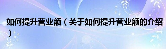 大家好,今天小乐来为大家解答以上的问题。如何提升营业额,关于如何提升营业额的介绍很多人还不知道,现在让我们一起来看看吧!