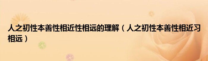 关于人之初性本善性相近性相远的理解,人之初性本善性相近习相远这个很多人还不知道,今天菲菲来为大家解答以上的问题,现在让我们一起来看看吧!