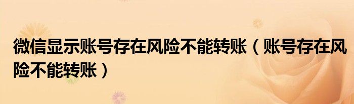 大家好,小晋来为大家解答以下问题,关于微信显示账号存在风险不能转账,账号存在风险不能转账很多人还不知道,今天让我们一起来看看吧!