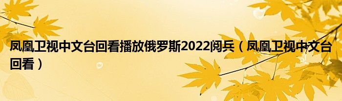 关于凤凰卫视中文台回看播放俄罗斯2022阅兵,凤凰卫视中文台回看这个很多人还不知道,今天菲菲来为大家解答以上的问题,现在让我们一起来看看吧!