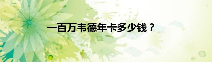 关于一百万韦德年卡多少钱?这个很多人还不知道,今天菲菲来为大家解答以上的问题,现在让我们一起来看看吧!