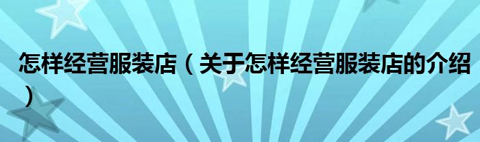 大家好,今天小乐来为大家解答以上的问题。怎样经营服装店,关于怎样经营服装店的介绍很多人还不知道,现在让我们一起来看看吧!