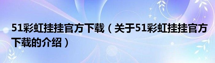 51彩虹挂挂官方下载(关于51彩虹挂挂官方下载的介绍)