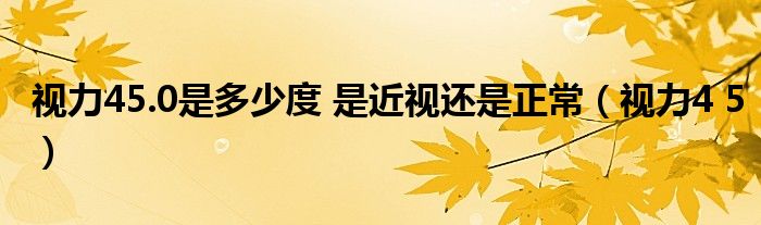 关于视力45.0是多少度 是近视还是正常,视力4 5这个很多人还不知道,今天菲菲来为大家解答以上的问题,现在让我们一起来看看吧!