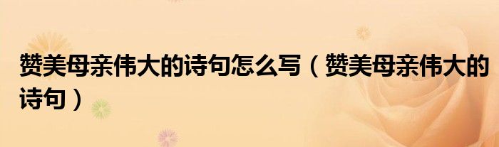 大家好,小晋来为大家解答以下问题,关于赞美母亲伟大的诗句怎么写,赞美母亲伟大的诗句很多人还不知道,今天让我们一起来看看吧!