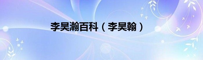 李昊瀚百科(李昊翰)