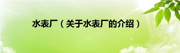 大家好,今天小乐来为大家解答以上的问题。水表厂,关于水表厂的介绍很多人还不知道,现在让我们一起来看看吧!