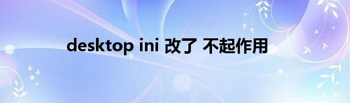 关于desktop ini 改了 不起作用这个很多人还不知道,今天菲菲来为大家解答以上的问题,现在让我们一起来看看吧!