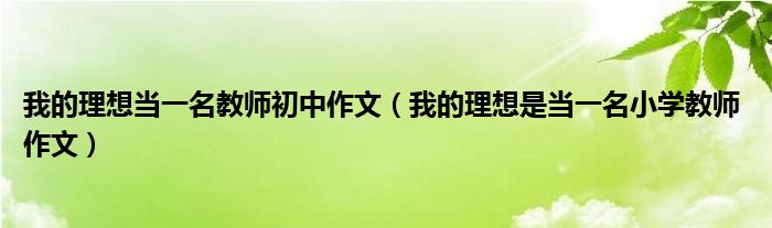 关于我的理想当一名教师初中作文,我的理想是当一名小学教师 作文这个很多人还不知道,今天菲菲来为大家解答以上的问题,现在让我们一起来看看吧!