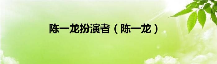 关于陈一龙扮演者,陈一龙这个很多人还不知道,今天菲菲来为大家解答以上的问题,现在让我们一起来看看吧!