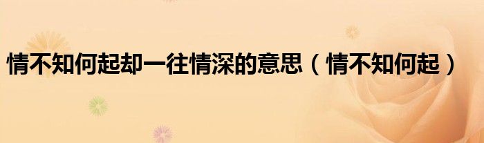 关于情不知何起却一往情深的意思,情不知何起这个很多人还不知道,今天菲菲来为大家解答以上的问题,现在让我们一起来看看吧!