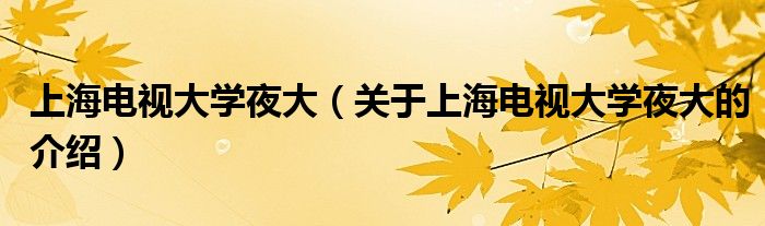 上海电视大学夜大(关于上海电视大学夜大的介绍)