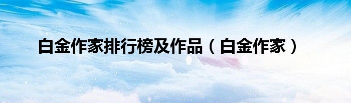 关于白金作家排行榜及作品,白金作家这个很多人还不知道,今天菲菲来为大家解答以上的问题,现在让我们一起来看看吧!