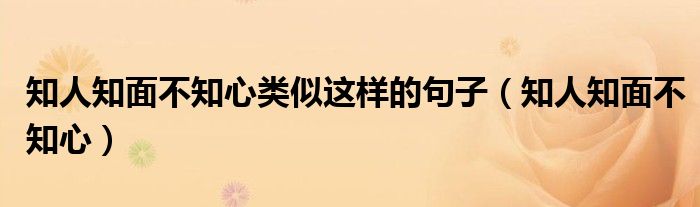 关于知人知面不知心类似这样的句子,知人知面不知心这个很多人还不知道,今天菲菲来为大家解答以上的问题,现在让我们一起来看看吧!