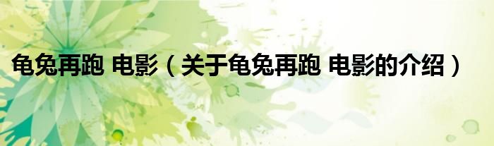 龟兔再跑 电影(关于龟兔再跑 电影的介绍)