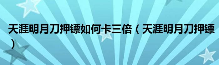 天涯明月刀押镖如何卡三倍,天涯明月刀押镖很多人还不知道,乐乐来为大家解答以上问题,现在让我们一起来看看吧!