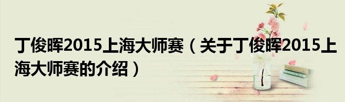 大家好,今天小乐来为大家解答以上的问题。丁俊晖2015上海大师赛,关于丁俊晖2015上海大师赛的介绍很多人还不知道,现在让我们一起来看看吧!