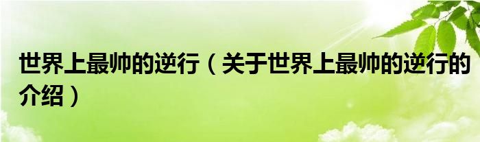 大家好,今天小乐来为大家解答以上的问题。世界上最帅的逆行,关于世界上最帅的逆行的介绍很多人还不知道,现在让我们一起来看看吧!