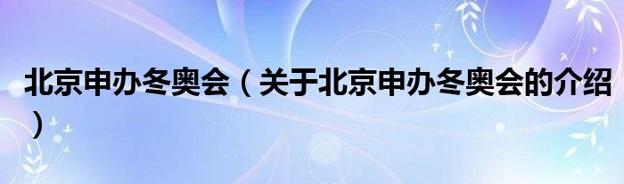 北京申办冬奥会(关于北京申办冬奥会的介绍)