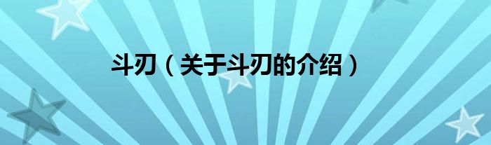 大家好,今天小乐来为大家解答以上的问题。斗刃,关于斗刃的介绍很多人还不知道,现在让我们一起来看看吧!