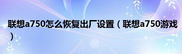 联想a750怎么恢复出厂设置,联想a750游戏很多人还不知道,乐乐来为大家解答以上问题,现在让我们一起来看看吧!
