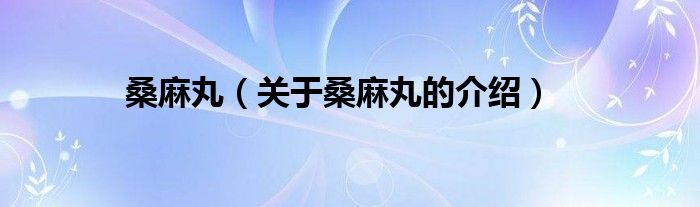 大家好,小都来为大家解答以上的问题。桑麻丸,关于桑麻丸的介绍很多人还不知道,现在让我们一起来看看吧!