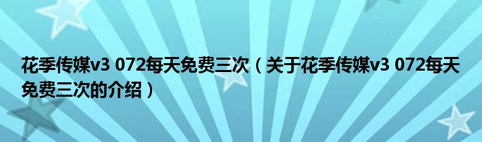 大家好,小都来为大家解答以上的问题。花季传媒v3 072每天免费三次,关于花季传媒v3 072每天免费三次的介绍很多人还不知道,现在让我们一起来看看吧!