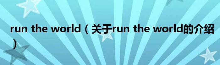 大家好,小都来为大家解答以上的问题。run the world,关于run the world的介绍很多人还不知道,现在让我们一起来看看吧!