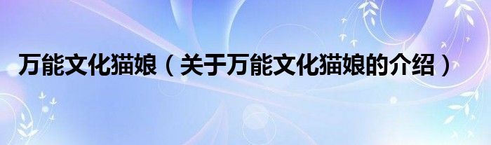 大家好,小都来为大家解答以上的问题。万能文化猫娘,关于万能文化猫娘的介绍很多人还不知道,现在让我们一起来看看吧!