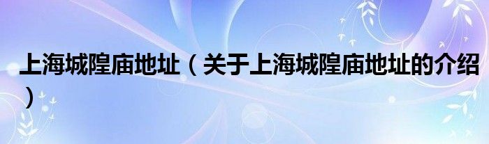 大家好,小都来为大家解答以上的问题。上海城隍庙地址,关于上海城隍庙地址的介绍很多人还不知道,现在让我们一起来看看吧!