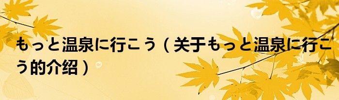 大家好,小都来为大家解答以上的问题。もっと温泉に行こう,关于もっと温泉に行こう的介绍很多人还不知道,现在让我们一起来看看吧!