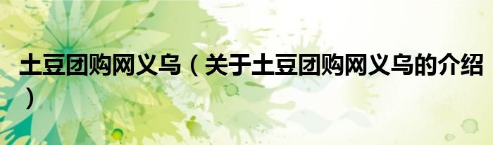 大家好,小都来为大家解答以上的问题。土豆团购网义乌,关于土豆团购网义乌的介绍很多人还不知道,现在让我们一起来看看吧!