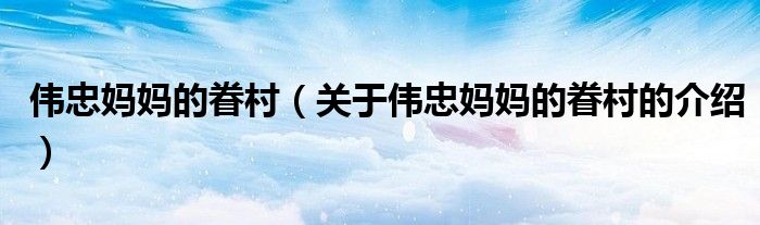 大家好,小都来为大家解答以上的问题。伟忠妈妈的眷村,关于伟忠妈妈的眷村的介绍很多人还不知道,现在让我们一起来看看吧!