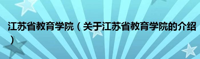 江苏省教育学院(关于江苏省教育学院的介绍)
