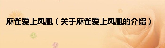 大家好,小都来为大家解答以上的问题。麻雀爱上凤凰,关于麻雀爱上凤凰的介绍很多人还不知道,现在让我们一起来看看吧!