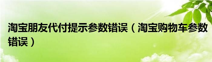 大家好,雨雨来为大家解答以上问题,淘宝朋友代付提示参数错误,淘宝购物车参数错误很多人还不知道,现在让我们一起来看看吧!