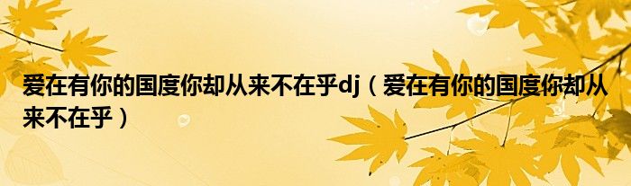 大家好,雨雨来为大家解答以上问题,爱在有你的国度你却从来不在乎dj,爱在有你的国度你却从来不在乎很多人还不知道,现在让我们一起来看看吧!