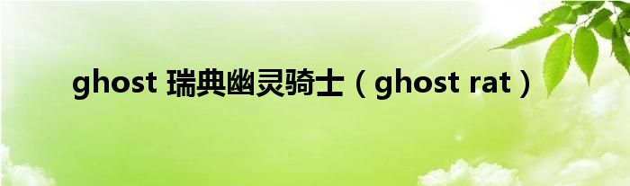大家好,雨雨来为大家解答以上问题,ghost 瑞典幽灵骑士,ghost rat很多人还不知道,现在让我们一起来看看吧!