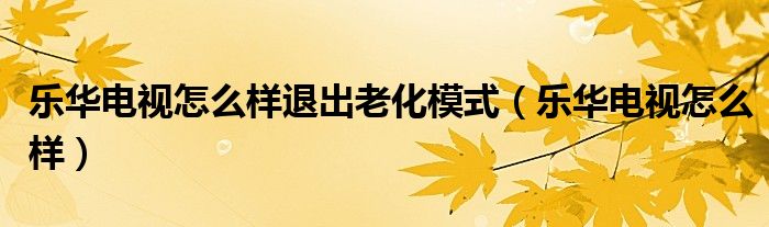 大家好,雨雨来为大家解答以上问题,乐华电视怎么样退出老化模式,乐华电视怎么样很多人还不知道,现在让我们一起来看看吧!