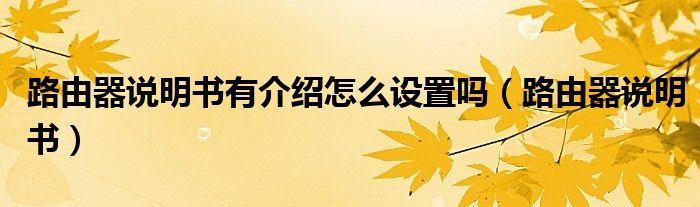 路由器说明书有介绍怎么设置吗(路由器说明书)