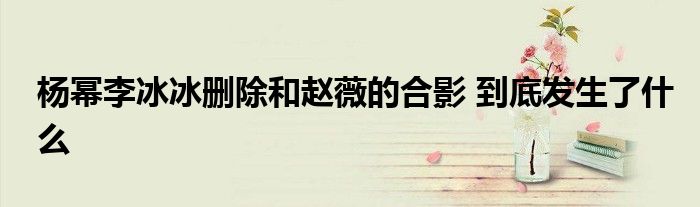 大家好.我是互联百科的羽儿,现在为大家解决以上杨幂李冰冰删除和赵薇的合影 到底发生了什么的问题.