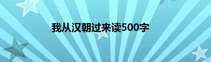 关于我从汉朝过来读500字这个很多人还不知道,今天菲菲来为大家解答以上的问题,现在让我们一起来看看吧!