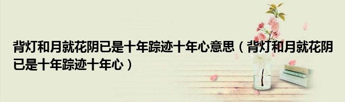 关于背灯和月就花阴已是十年踪迹十年心意思,背灯和月就花阴已是十年踪迹十年心这个很多人还不知道,今天菲菲来为大家解答以上的问题,现在让我们一起来看看吧!