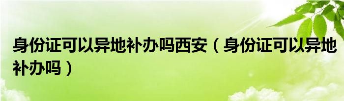 关于身份证可以异地补办吗西安,身份证可以异地补办吗这个很多人还不知道,今天菲菲来为大家解答以上的问题,现在让我们一起来看看吧!