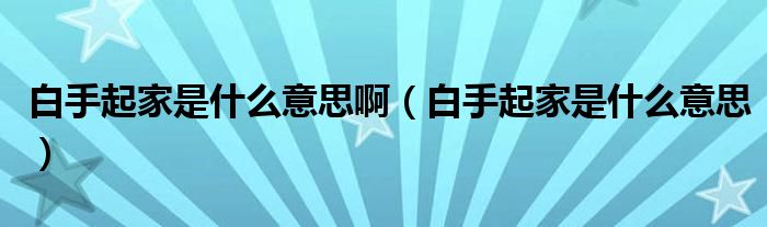 关于白手起家是什么意思啊,白手起家是什么意思这个很多人还不知道,今天菲菲来为大家解答以上的问题,现在让我们一起来看看吧!