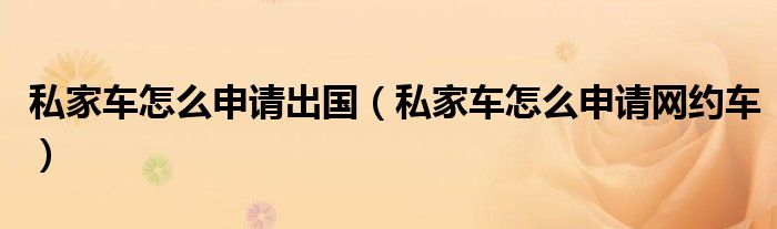 大家好,小晋来为大家解答以下问题,关于私家车怎么申请出国,私家车怎么申请网约车很多人还不知道,今天让我们一起来看看吧!