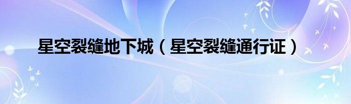 大家好,小晋来为大家解答以下问题,关于星空裂缝地下城,星空裂缝通行证很多人还不知道,今天让我们一起来看看吧!