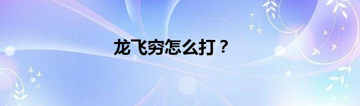 关于龙飞穷怎么打?这个很多人还不知道,今天菲菲来为大家解答以上的问题,现在让我们一起来看看吧!