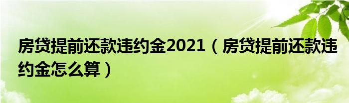 关于房贷提前还款违约金2021,房贷提前还款违约金怎么算这个很多人还不知道,今天菲菲来为大家解答以上的问题,现在让我们一起来看看吧!
