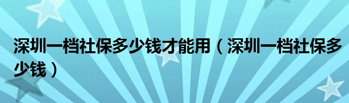 深圳一档社保多少钱才能用(深圳一档社保多少钱)